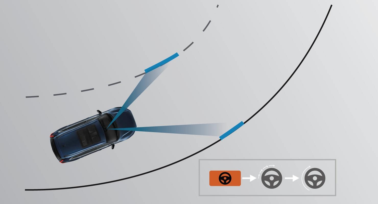 Hỗ trợ đánh lái để cho xe luôn đi giữa làn đường, đồng thời hiển thị cảnh báo trong trường hợp xe chệch khỏi làn đường