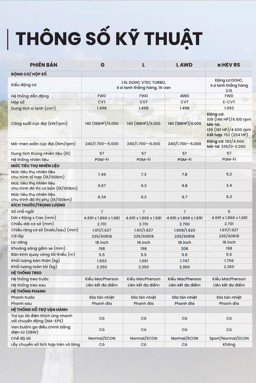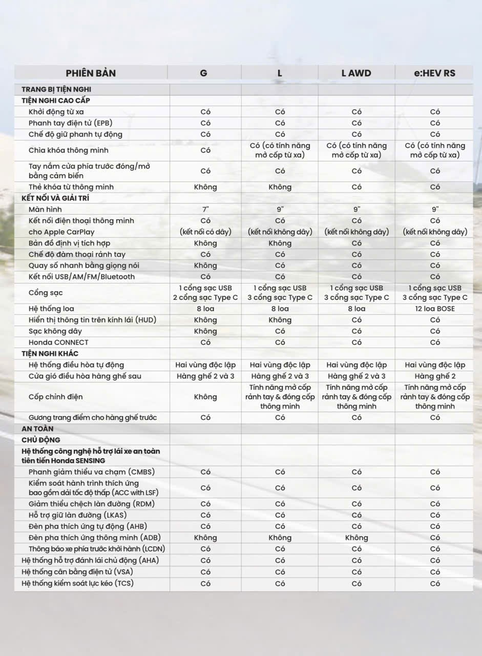 - Trang bị Honda Sensing và Honda Connect
