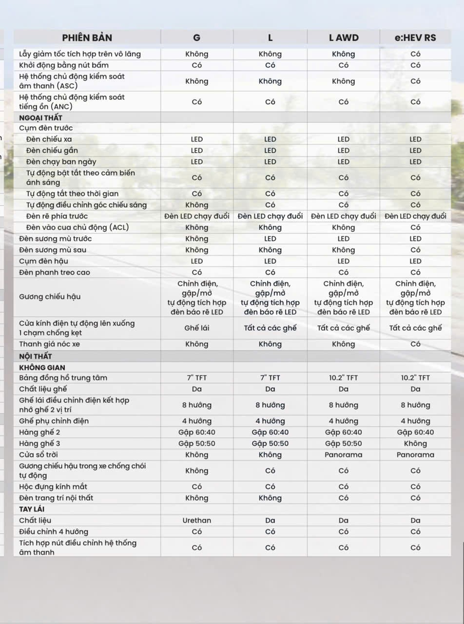 - Honda CR-V e:HEV RS (Giá từ 1.259.000.000 VND): Trắng, Đen, Xám, Đỏ, Xanh (Màu đỏ, trắng + 8 triệu)